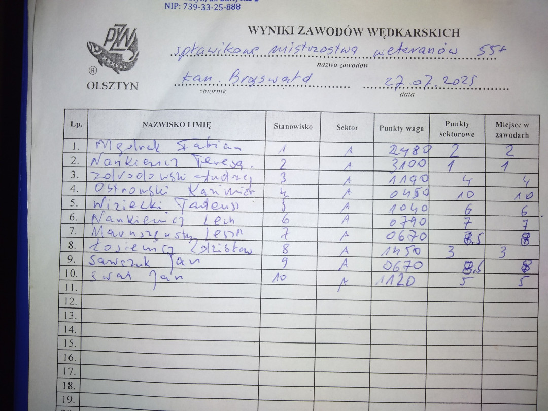 Spławikowe Mistrzostwa weteranów 55+ i 65+