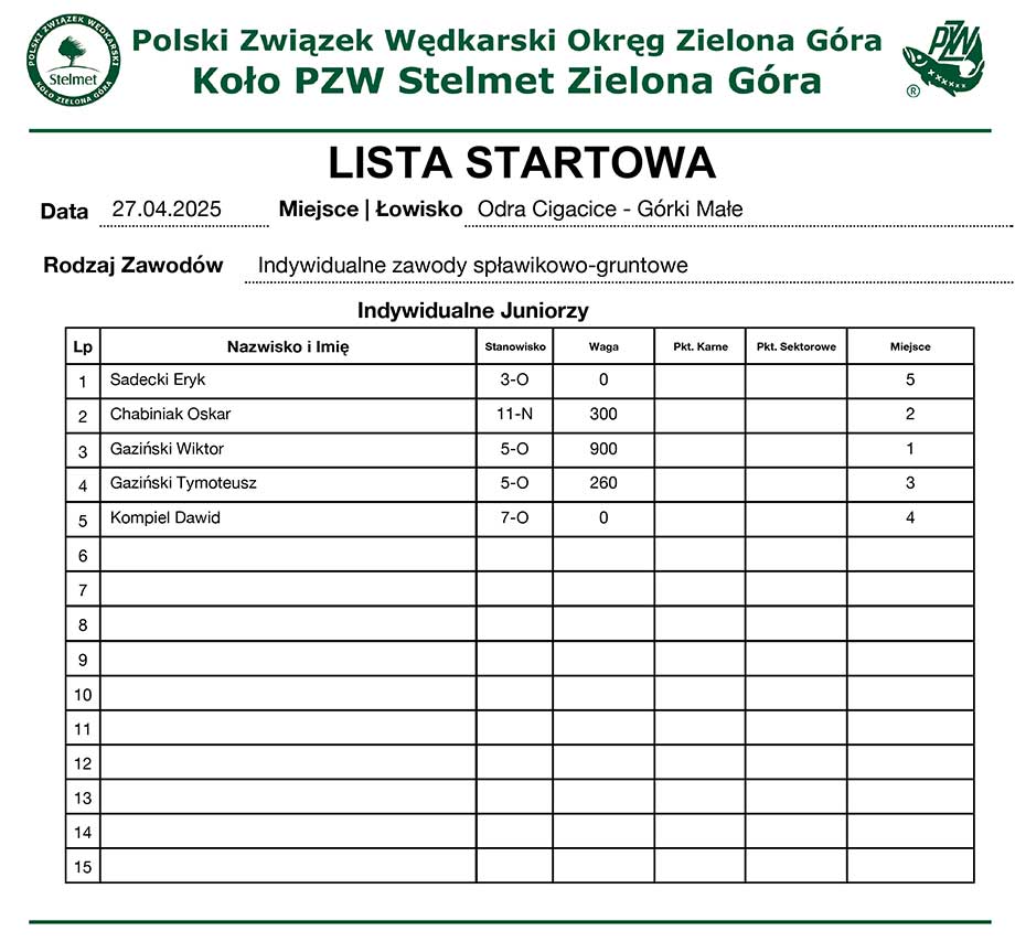 1 Spławikowe GPP U-15 2023