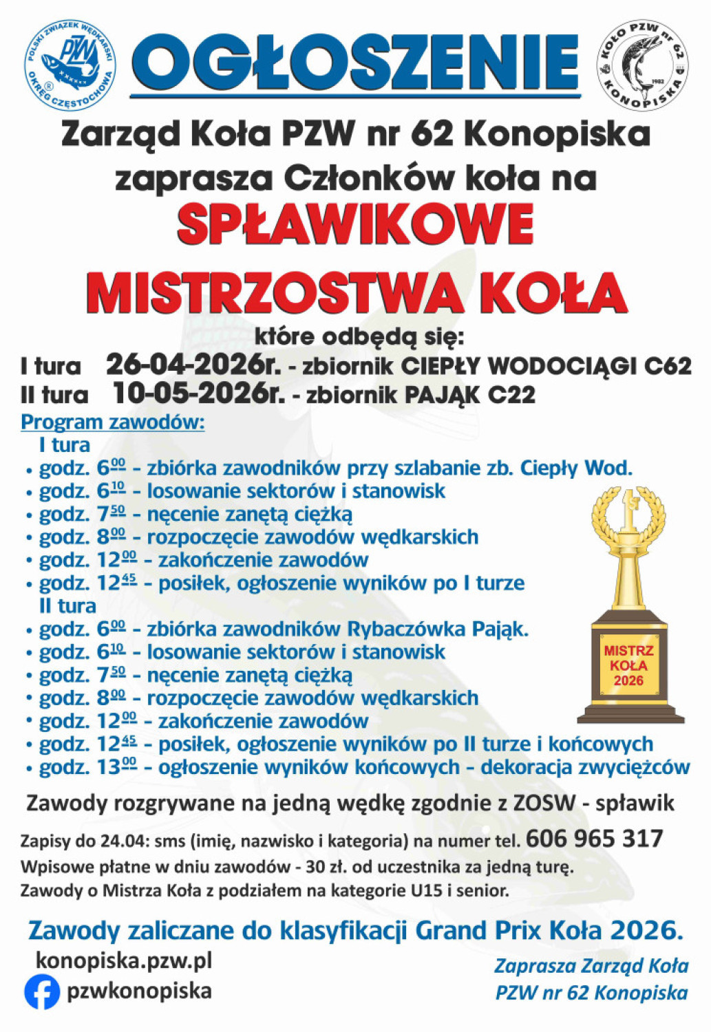 Spławikowe zawody „WIOSNA” 2026 r.
