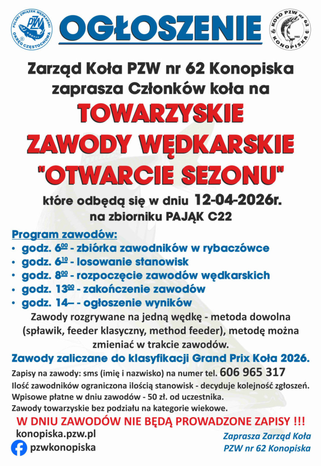 Zawody Rozpoczęcie Sezonu Wędkarskiego 2026